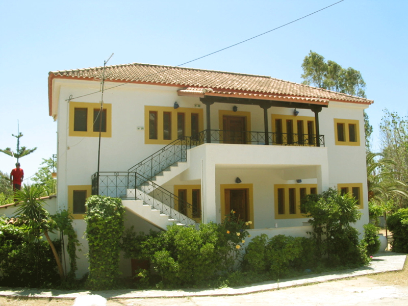 Das Haus Anna liegt etwas außerhalb des Ortes (10 Gehminuten ins Zentrum) eine Bucht weiter in Richtung Osten in einem gepflegten Garten und hat über diesen einen direkten Zugang zum Strand. Es verfügt über 8 Doppelzimmer mit DU/WC und A/C. Die Zimmer sind sauber und zweckmäßig eingerichtet aber nicht allzu groß, vom Balkon hat man einen schönen Blick aufs Meer. Auf jeder Ebene steht ein Gemeinschafts-kühlschrank zur Verfügung, Küche gibt es jedoch keine. Frühstück ist im benachbarten Hotel Golden Sun (links daneben) oder der Paradise Beach Bar (rechts daneben) möglich. Wer sich selbst verpflegen möchte, muss die entsprechenden Utensilien (Teller, Tassen, Besteck, Kaffeemaschine, Gas-/Wasserkocher) selbst mitbringen.